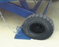 | 防止車輛傾覆的高度可調(diào)支撐座。支撐于車輛尾部大梁上,防止叉車進入車輛時,重力集中于車輛尾部發(fā)生車輛傾覆。能夠充分保障作業(yè)安全。 | 移動式液壓登車橋坡面采用特制的高強度齒形鋼格板,具有卓越的防滑性能,使叉車有更好的爬坡能力和操控性。即使雨雪天氣,仍能保障正常作業(yè)。 | 隨機配置的剎車墊,能有效防止叉車在登車橋上行走時,登車橋發(fā)生溜車及移動,以保障作業(yè)安全。 | 采用手動液壓泵作為動力,不需外接電源即可輕松實現(xiàn)登車橋的高度調(diào)節(jié)。同時可根據(jù)客戶需要,選配直流電源作起升動力。 | 可調(diào)節(jié)長度的索鏈用于鉤住車輛,使登車橋與卡車發(fā)生移位時,登車橋與卡車不會脫離,保障作業(yè)安全。 |